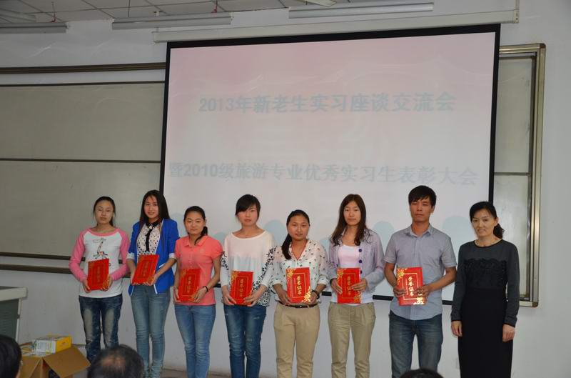 球王会于2013年5月30日在一区三阶八召开了“2013年新老生实习交流座谈会暨2013届优秀实习生表彰大会”,球王会经理郭琰、党总支副书记韦菲和旅游教研室的全体教师,2010级部分优秀实习生、2011级旅游管理和酒店管理的全体员工参加了大会。