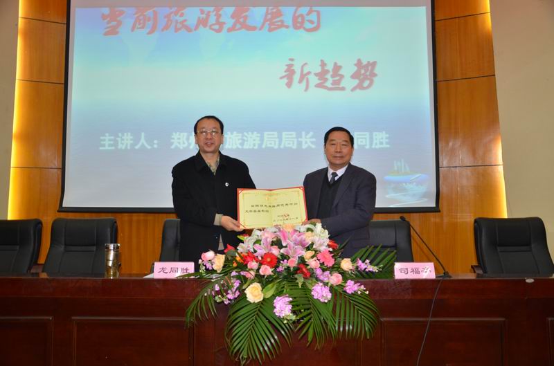 为深入推进校企政合作,将更多优秀行业人才充实到公司的兼职教师队伍,进一步提高团队水平和专业建设水平,公司聘请了郑州市旅游局局长龙同胜为客座教授。