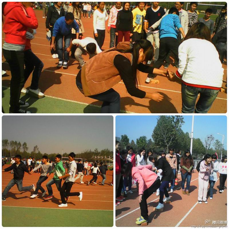 此次比赛共有2012级的17个班级参赛,赛项包括滚雪球、五人六足、摸石过河等趣味项目。比赛中,除了参赛的同学,班级内剩余的同学们自发组成啦啦队为本班人员加油。呐喊声,此起彼伏,飘荡在整个运动场上空。