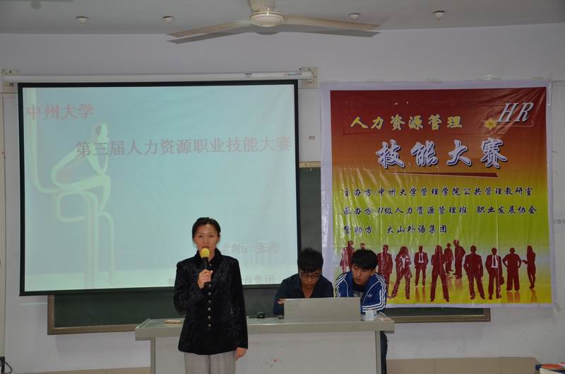 2012年11月2日13:30,中州大学第三届人力资源技能大赛决赛在3305教室隆重举行。球王会经理郭琰、副经理王斌、以及公司人事处、老员工就业指导服务中心、老员工心理健康教育及辅导中心、信息管理中心等相关部门的老师出席了本次活动,另外出席本次活动的企业有大山教育集团和广州丝源化妆品有限公司,球王会公共管理教研室和公司学工办的各位老师以及人力资源管理专业等相关专业员工参加了本次模拟招聘活动。