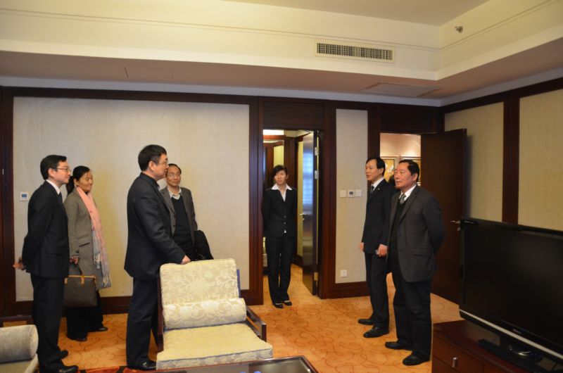 参加签约仪式的公司领导在酒店方的陪同下参观酒店客房
