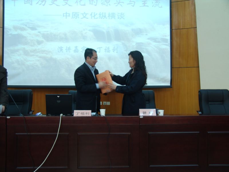 聘任仪式结束后,丁福利副经理就“中国历史文化的源头与主流——中原文化纵横谈”做了一场精彩的讲座。丁经理用平实而不失幽默的方式向大家展示了他丰富而深厚的历史和文学修养。讲座由当前热门事件和话题——中原经济区建设引入中原特色文化,由浅入深的分析了中原文化缘何成为中国历史文化的源头与主流。这场讲座精彩纷呈、也使大家很受裨益。(球王会 赵 鑫)