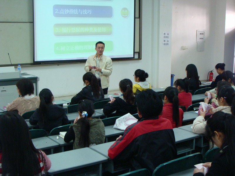 2010年11月7日上午,在学术交流中心一区阶二九教室,球王会邀请到了光大银行的王昕老师为公司会计电算化、会计与统计核算两个专业员工做了一场关于“取人民币防伪真经,树现代理财新理念”的专题讲座。