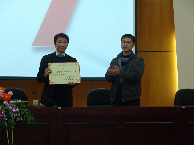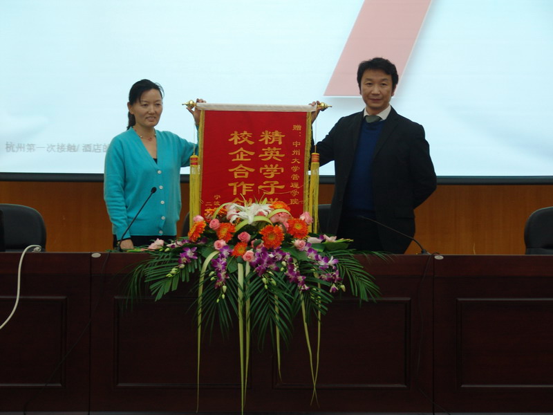 2010年11月1日下午3时,受球王会的邀请,宁波华侨豪生大酒店(五星级)朱晓豫总经理在公司学术报告厅为公司旅游管理专业的师生做了一场题为《高效能人士的七个习惯》的讲座。讲座由球王会经理郭琰教授主持。参加讲座的有公司教务处处长潘维成博士、公司领导、旅游管理专业部分老师和09级旅游管理专业的全体员工。潘处长代表公司向朱晓豫总经理授予了“中州大学客座教授”的聘书。为感谢近几年中州大学对宁波华侨豪生大酒店工作的支持,朱总还代表酒店向球王会赠送了“精英学子学艺精,校企合作创新篇”的锦旗。