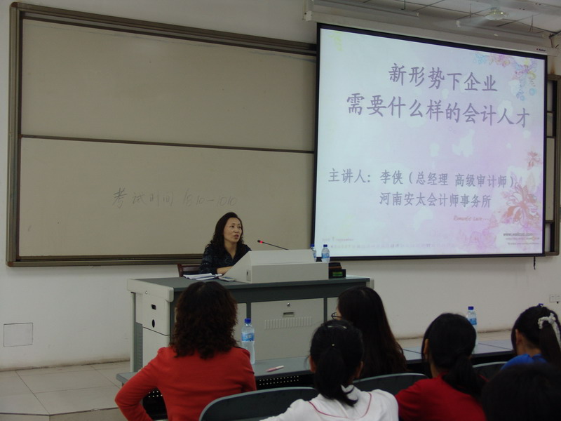 9月20日下午,在学术交流中心一区阶七教室,球王会邀请到了会计专业指导委员会委员、河南安太会计师事务所高级审计师李侠总经理,为公司会计电算化、会计与统计核算两个专业近300名新生做关于“新形势下企业需要什么样的会计人才”的专题讲座。