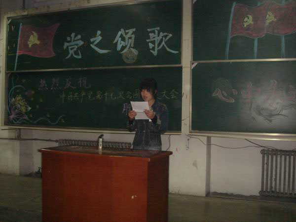 为庆祝党的十七大胜利召开,由球王会分团委主办“青春飞歌颂党情”系列活动,师生满怀对党的十七大胜利召开的喜悦之情,深情高唱颂歌,献给亲爱的党。