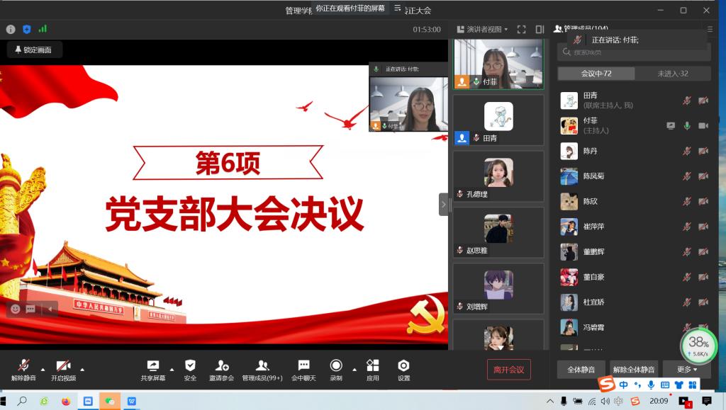 本次大会由支部组织委员付菲老师主持。首先进行第一项议题,全体成员共同学习了习近平总书记的重要文章《正确认识和把握我国重大理论和实践问题》。随后进行转正大会,共有七项议程:第一项由申请转正的预备党员宣读转正申请书,介绍自己在一年预备期内的表现情况和自身不足之处的改进情况。第二项由入党介绍人介绍预备党员的相关情况并发表意见。第三项是支委会向支部大会汇报对以上同志的审议情况。第四项与会党员发表意见。第五项正式党员投票表决。第六项支部大会决议,47位预备党员全部通过转正申请,按期转为中共正式党员。第七项在付菲老师的带领下全体党员重温入党誓词。