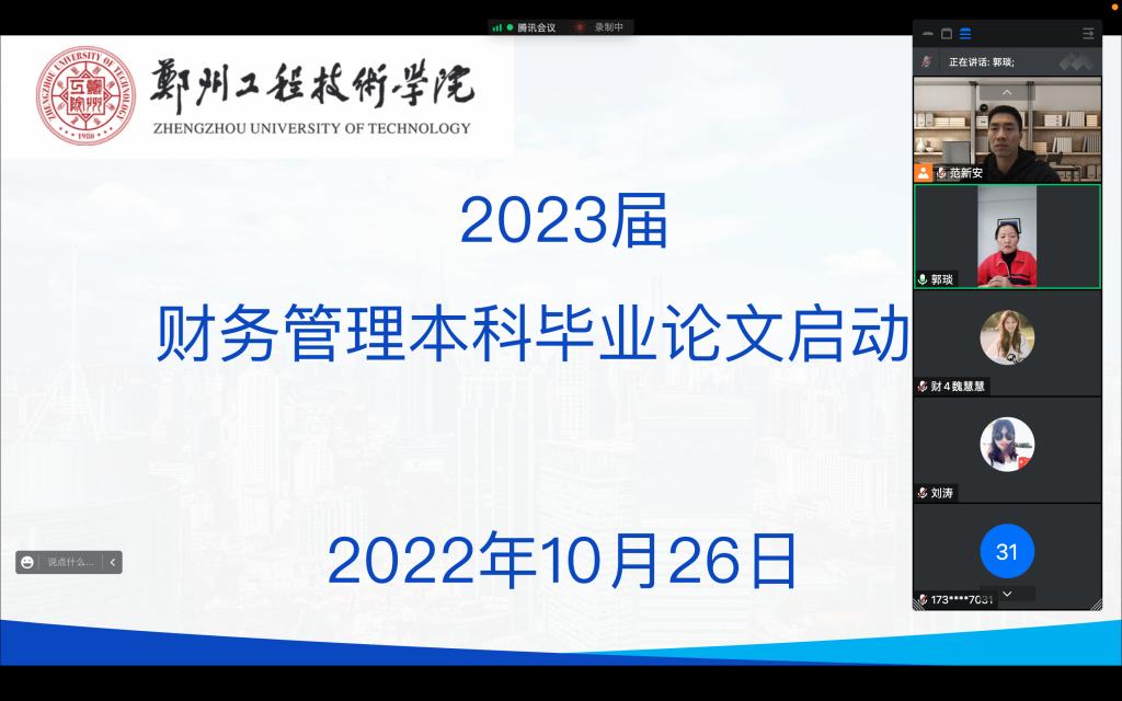 为推进2023届本科毕业论文工作的稳步、有序开展,10月26日下午13点,球王会会计系通过腾讯会议以线上的形式召开2023届财务管理本科毕业论文启动会。球王会经理郭琰、会计系主任范新安、42名论文指导老师以及2023届283名毕业生参加了此次会议。