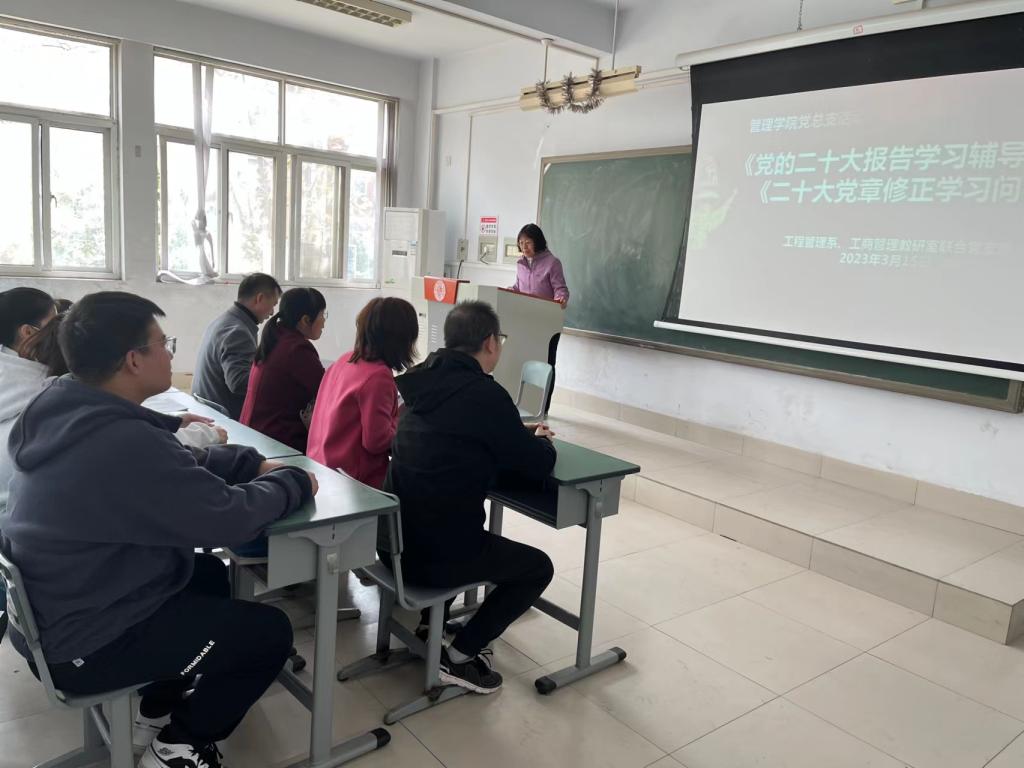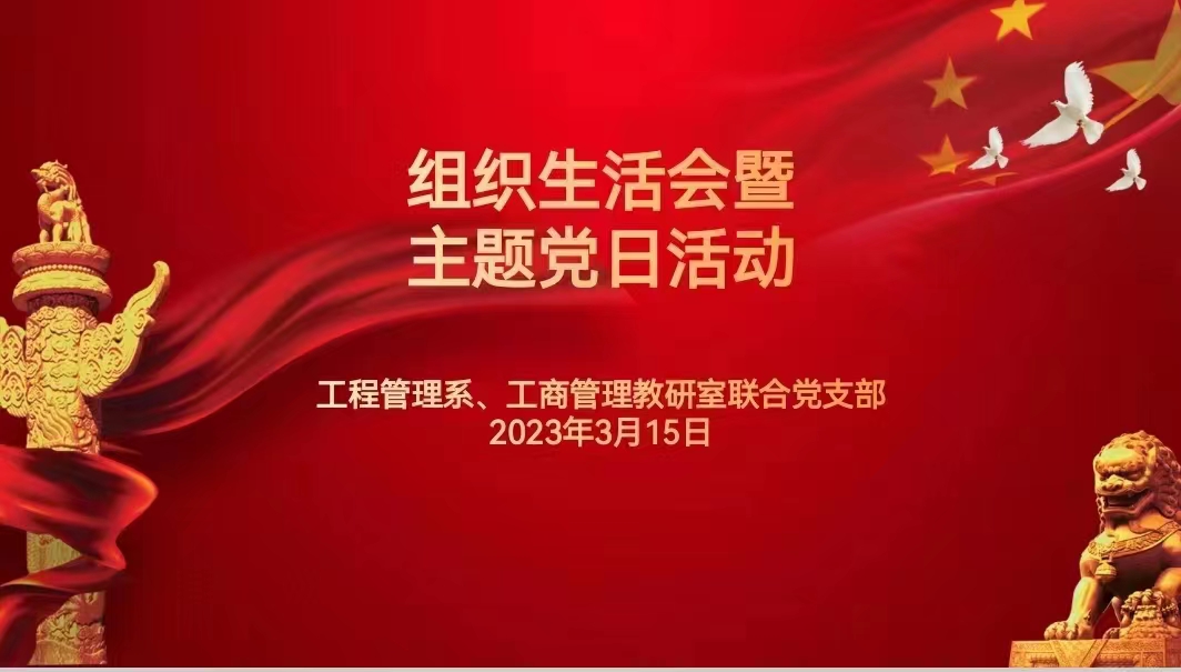 3月15日下午,公司工程管理系、工商管理教研室联合党支部在英才校区3202教室召开2022年度组织生活会,会议由工程管理系、工商管理教研室联合党支部书记孙海玲教授主持,支部全体党员参加会议。
