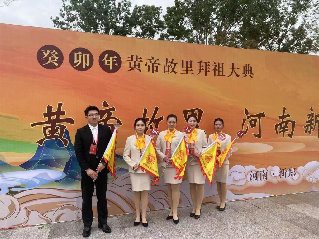 受黄帝故里拜祖大典组委会的邀请,来自各县、市区人民政府、机关企事业单位、大专院校、省(市)直旅行社的65名接待讲解员参加了此次服务,其中公司旅游系6名员工参加了拜祖大典的讲解和服务工作。对于本次活动,公司领导非常重视,提前按要求选拔出参加讲解服务的员工并上报组委会。同学们积极踊跃参与,热情高涨,报名100余人,分别在航海校区、英才校区开展选拔和面试。初选剩余56人,复选剩余11人,经过三轮激烈的竞争,最后徐川川、倪贝茜、柳慧芳、赵方雨、何梦丽、林森6位同学脱颖而出,参加了本次癸卯年黄帝故里拜祖大典讲解和服务工作。