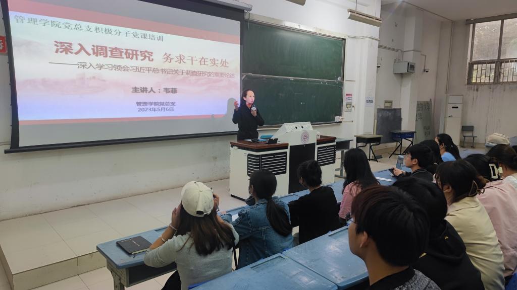 5月6日下午,2022-2023学年第二学期入党积极分子党课培训第一讲正式开始。本次党课的主讲人是公司党总支书记韦菲,主题是《深入调查研究 务求干在实处——深入学习领会习近平总书记关于调查研究的重要论述》。