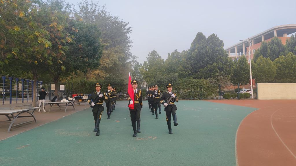 上午7点,升国旗仪式正式开始。国旗护卫队迈着矫健的步伐,以昂扬的姿态护送国旗至升旗台,伴随着雄壮的《义勇军进行曲》,鲜艳的五星红旗迎着霞光冉冉升起。现场师生行注目礼并高唱国歌,表达着对伟大祖国的深情热爱和对球王会官网的美好期许。