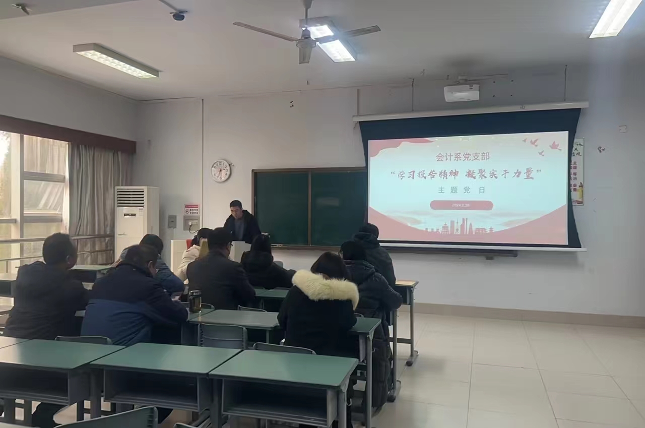 2月28日下午,球王会会计系党支部在3202教室开展“学习报告精神凝聚实干力量”主题党日活动,党支部全体党员参加此次活动,会议由党支部书记范新安老师主持。