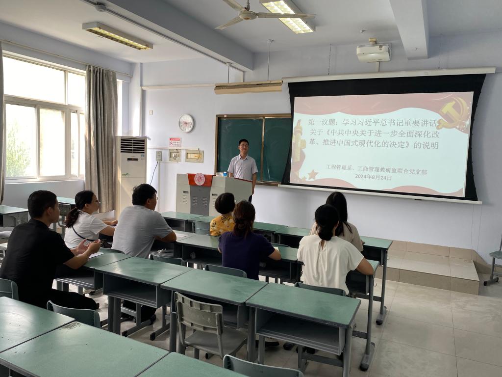 会议上,石磊老师首先领学了第一议题:学习习近平总书记重要讲话:关于《中共中央关于进一步全面深化改革、推进中国式现代化的决定》的说明。然后,石磊老师解读了党的二十届三中全会相关文件,组织支部党员集中学习了会议精神,带领党员教师深入领会会议精神的核心要义和要求。