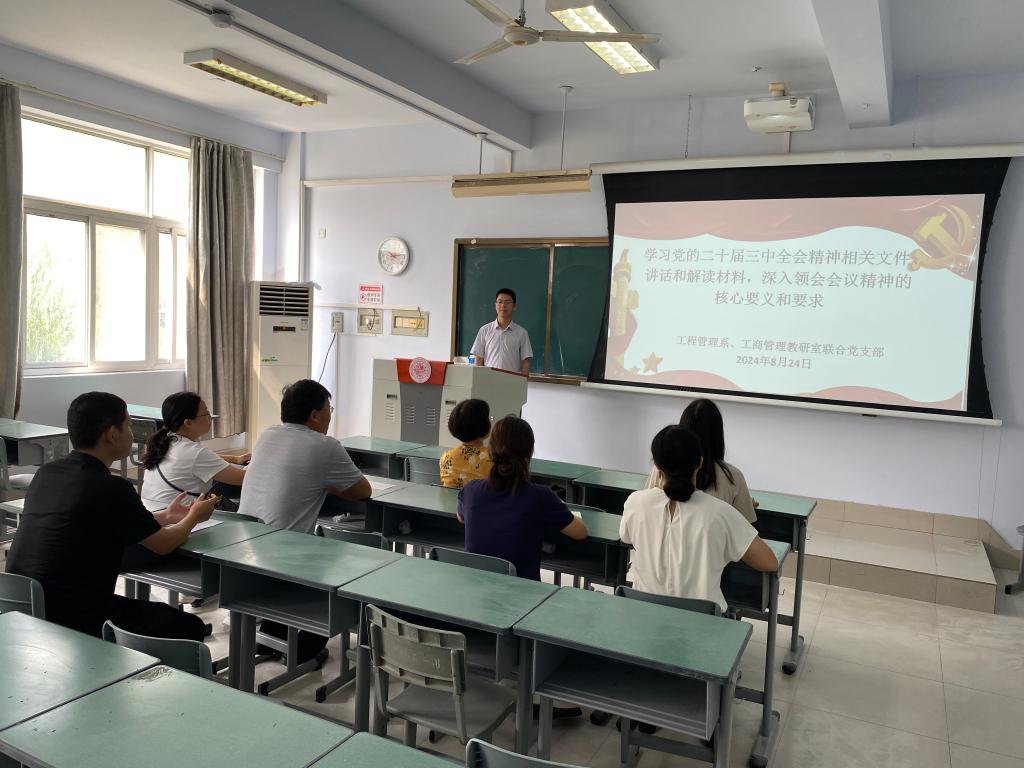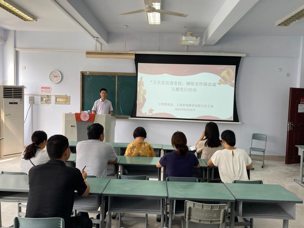 8月24日,公司工程管理系、工商管理教研室联合党支部在3203教室开展了“万名党员进党校,锤炼党性铸忠诚”主题党日活动,本次会议由工程管理系石磊老师主持,全体党员积极参加。