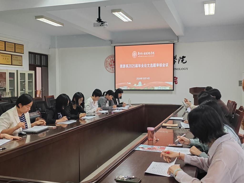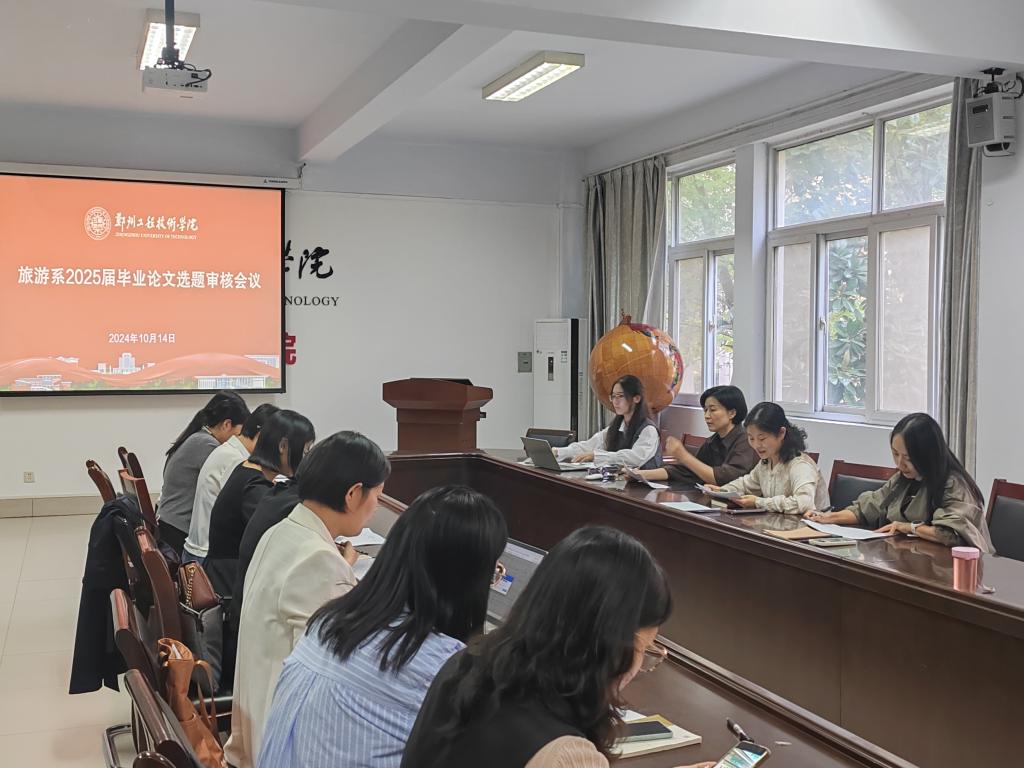 10月14日下午,旅游系于3108会议室成功举办了2025届酒店管理专业毕业论文选题审核会。此次会议由旅游系主任华萍教授主持,并邀请旅游系副高以上职称的12位教师担任审核专家,共同为提升酒店管理专业毕业论文质量把关。