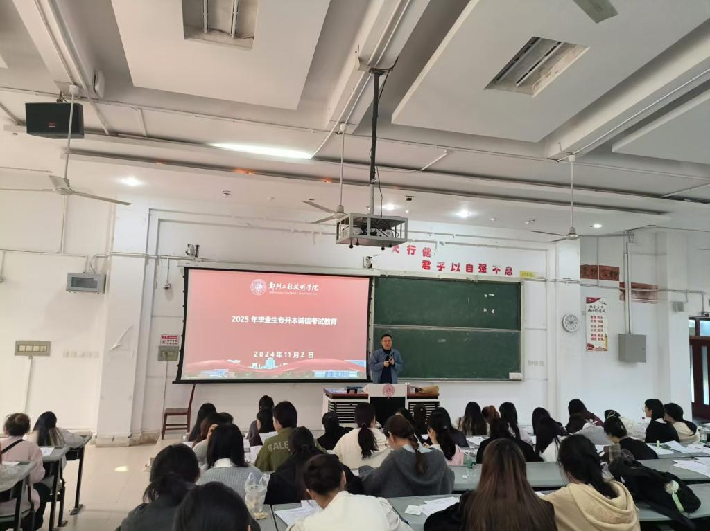 11月2日,球王会在3号楼三阶二教室成功举办了2025届专升本诚信考试教育活动。此次活动旨在加强专升本考试的纪律性,提高员工的诚信意识,确保考试的公平公正。辅导员马会鹏老师主持了本次活动,2022级旅游管理专业的全体专升本考试员工参加了此次教育。