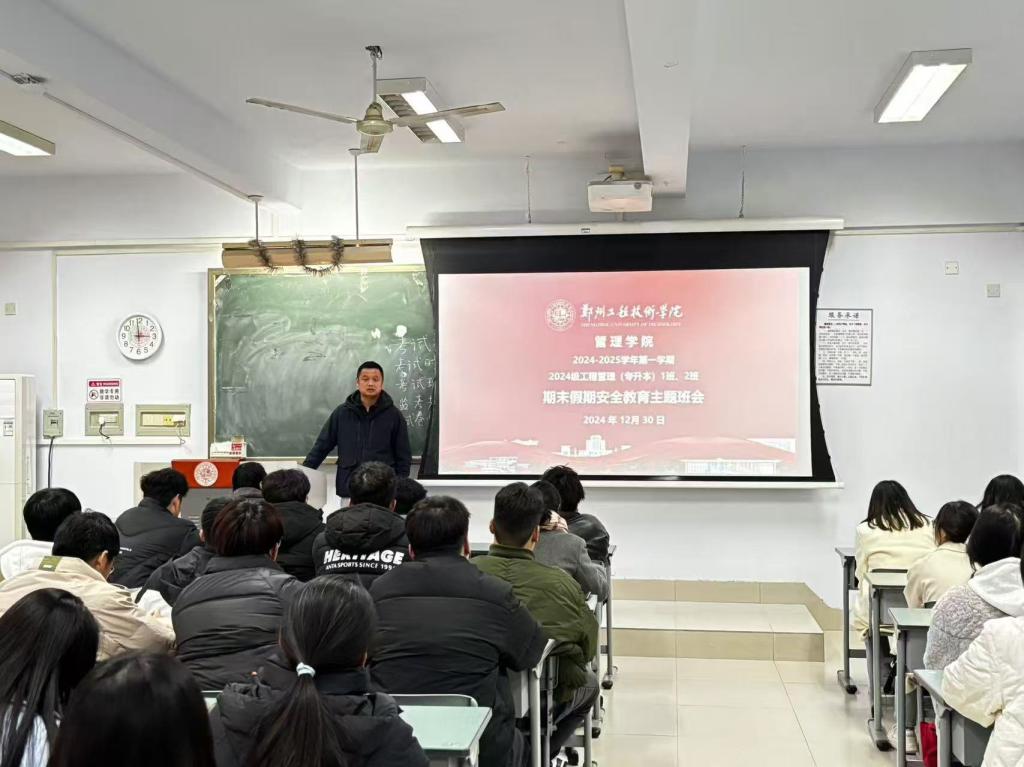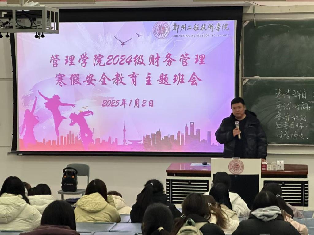 班会上,辅导员老师首先强调了寒假期间员工应自觉遵纪守法、遵守社会公德的重要性。辅导员指出,作为老员工,同学们不仅要维护个人形象,更要成为社会的楷模,必须牢固树立“安全第一”的思想,时刻警醒自己,远离任何违法违纪行为。