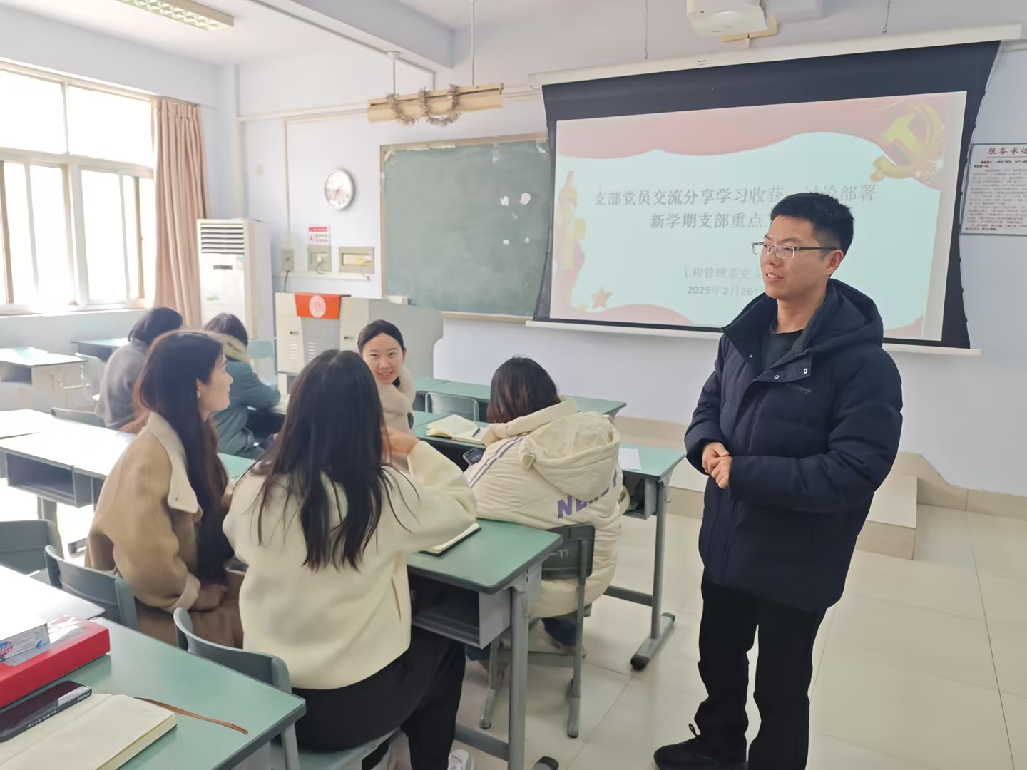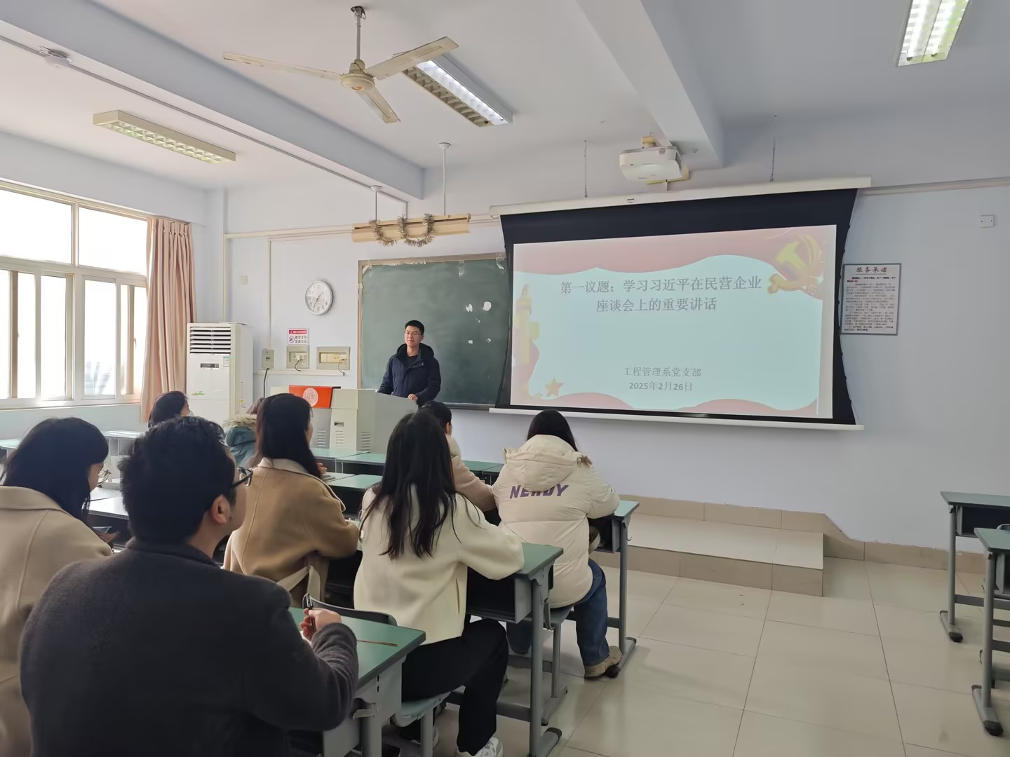 为传达学习河南省和郑州市两会精神,激励广大党员师生在新的学期继续奋发有为,工程管理系党支部于2 月 26 日下午在3205教室,开展了“两会精神做引领,凝心聚力再启航”主题党日活动,党支部书记石磊老师主持会议,工程管理系全体党员积极参与,共同学习、交流,为新学期工作谋篇布局。
