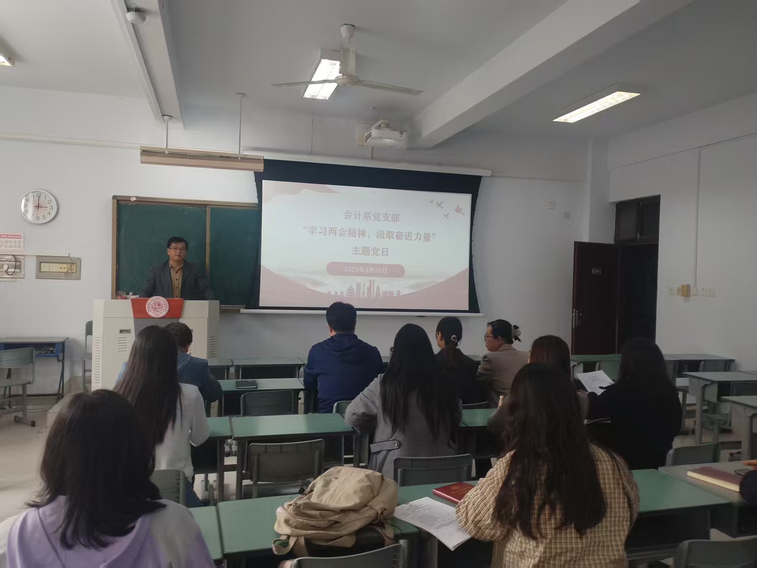 为学习贯彻两会精神,在学深悟透中凝聚思想共识,在热议畅谈中激发奋进力量,球王会会计系党支部于3月26日15:00在博识楼3203教室开展“学习两会精神,汲取奋进力量”主题党日活动。此次活动由会计系党支部书记殷瑞普主持,支部全体成员参与。