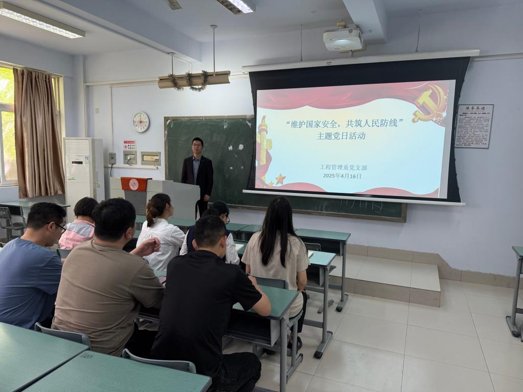 为深入学习习近平总书记关于加强国家安全教育的重要指示批示精神,全面贯彻总体国家安全观,提升师生国家安全意识,使关心国家安全、维护国家安全成为师生的思想共识和自觉行动,筑牢校园安全防线,4月16日下午,公司工程管理系党支部开展“维护国家安全 共筑人民防线”主题党日活动。