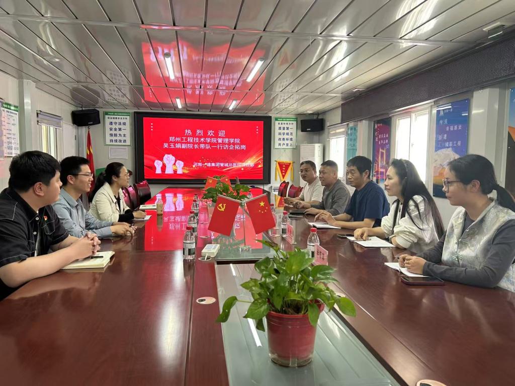 吴玉娟一行实地参观了项目部施工现场,详细了解项目规划、工程进度及施工管理流程,全面了解企业的业务布局。双方围绕行业发展趋势、技术革新方向展开交流,河南一建集团第二项目部党支部书记葛全斌重点分析了当前市场对工程管理专业人才的技能需求,强调了实践能力与创新思维的重要性。