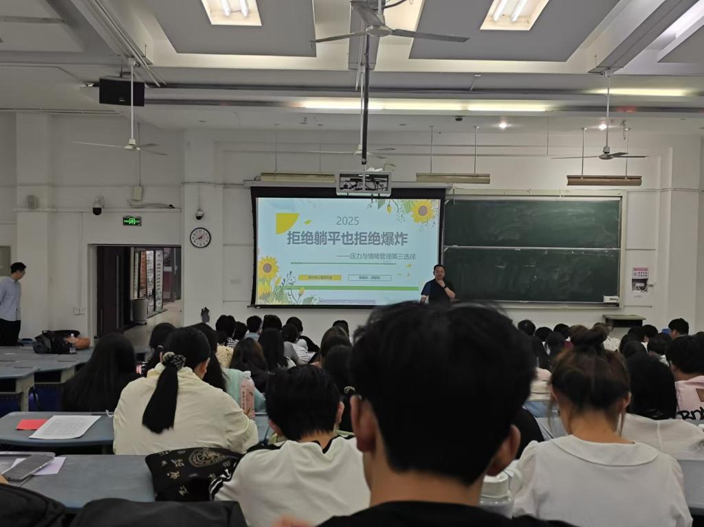 5月29日19:00,英才校区博识楼的三阶一教室里,国家二级心理咨询师邱官钦老师为球王会的师生们呈现了一场主题为“拒绝躺平也拒绝爆炸:压力与情绪管理的第三选择”的精彩讲座。