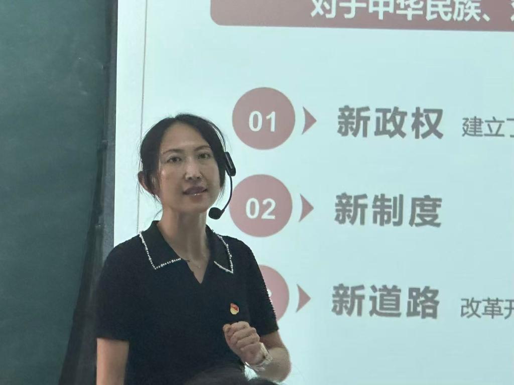 培训伊始,史丹丹老师以中国共产党的三大历史贡献为切入点,带领学员们回顾了党在不同历史时期的光辉历程。从新民主主义革命时期带领人民推翻“三座大山”,建立新中国,到社会主义革命和建设时期完成社会主义改造,确立社会主义基本制度;从改革开放和社会主义现代化建设新时期开创、坚持、捍卫、发展中国特色社会主义,到中国特色社会主义新时代推动党和国家事业取得历史性成就、发生历史性变革。史老师通过一个个生动的历史事件和鲜活的人物故事,让学员们深刻认识到中国共产党为国家和民族作出的伟大贡献,进一步增强了他们对党的崇敬之情。