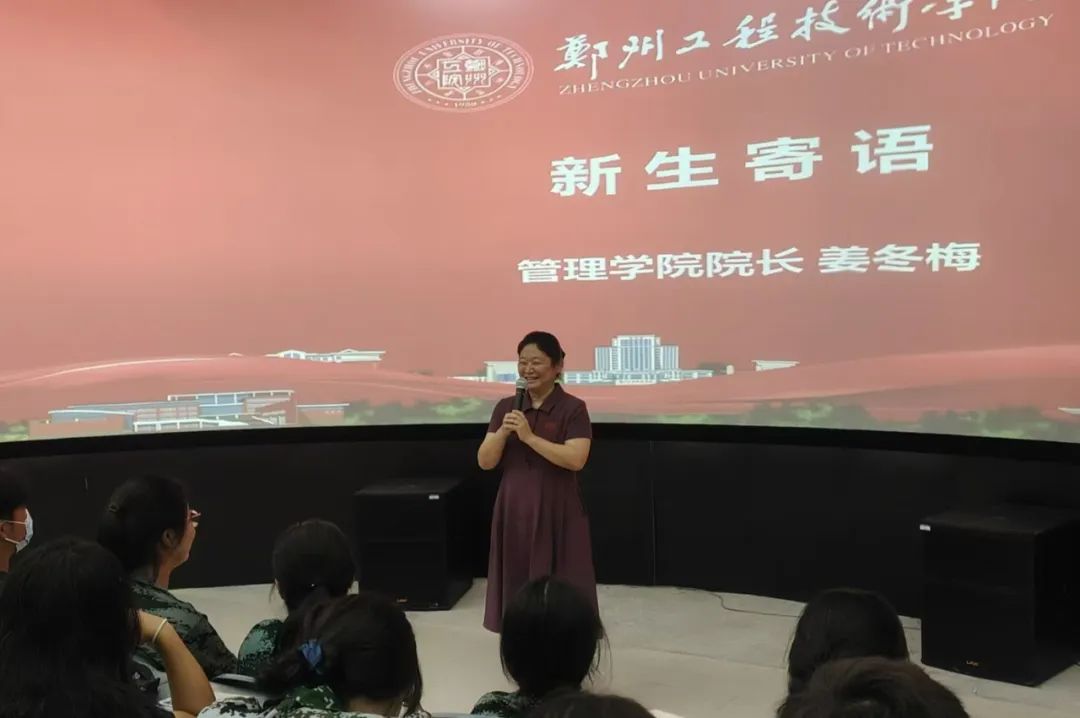 随着激昂的校歌声响起,活动正式开始。姜冬梅副董事长以风趣幽默的致辞欢迎2024级新生的到来,并对他们寄予厚望。她还代表公司向新生们分发了月饼、苹果、巧克力等中秋传统美食,寓意着团圆、平安与幸福,传达了公司对新生们的关怀与祝福。