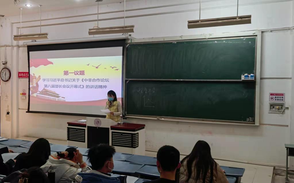 本次会议的第一议题是学习习近平总书记在中非合作论坛第八届部长会议开幕式上的讲话精神。