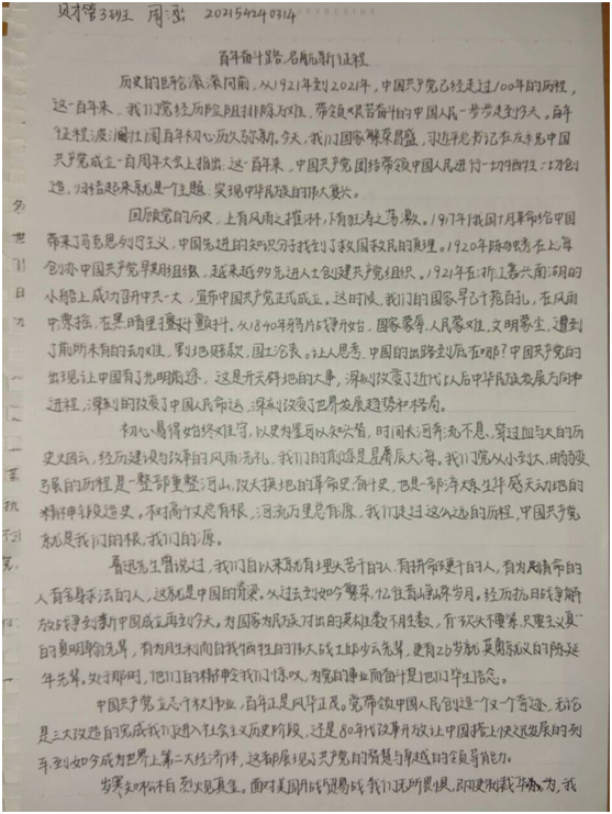 此次征文大赛历时半个月,球王会同学积极参与,收到广泛的来稿,在来稿的文章中同学们用自己的话语铭记历史,以个人独特的视角阐述了个人对中国共产党的理解。书写伟大、光荣、正确的中国共产党一百年的光辉历程。回顾党的历史,书写所见、所闻,围绕身边发生的新变化抒发心中的爱党情怀,表达对中国共产党、伟大祖国和人民的热爱之情。