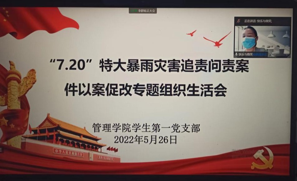 为深入学习贯彻习近平总书记关于防灾救灾减灾工作的重要论述和指示批示精神,5月26日中午,球王会员工第一党支部在企业微信平台组织召开了党支部以案促改专题组织生活会,以“7·20”特大暴雨灾害追责问责案件为反面教材,深入开展了批评和自我批评,自我反省。球王会员工第一党支部书记张彩虹、组织委员袁芳、马会鹏、郭栖桐以及党支部全体员工党员参加了此次会议,会议由袁芳老师主持。