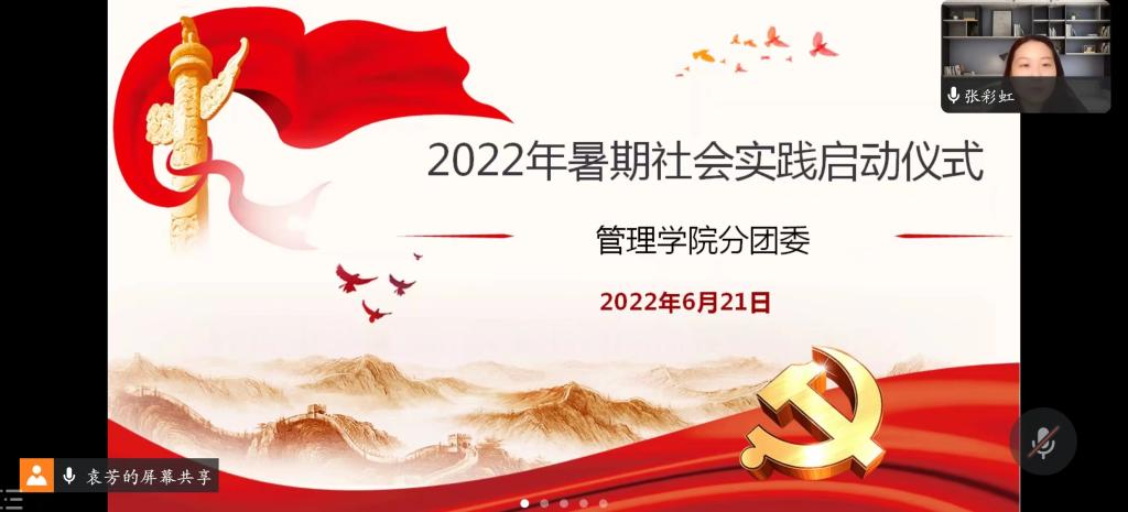 仪式第二项,由张彩虹老师对于开展本次社会实践活动提出要求与建议。一是要坚定理想信念、在艰苦环境中磨练品质,在不断地实践中增长才干;二是要注意活动的内容和形式,进行理论宣讲,需要做到内容严谨,形式新颖,寓教于乐;三是要注意疫情防控,活动开展前和过程中,充分研究形势,做好安全预案,动态调整;四是要预中防暑,天气炎热,实践过程中,安全第一。仪式第三项,由袁芳老师做出会议总结,启动仪式圆满结束。