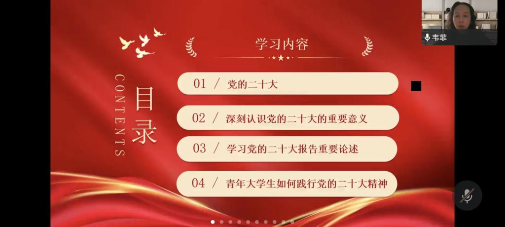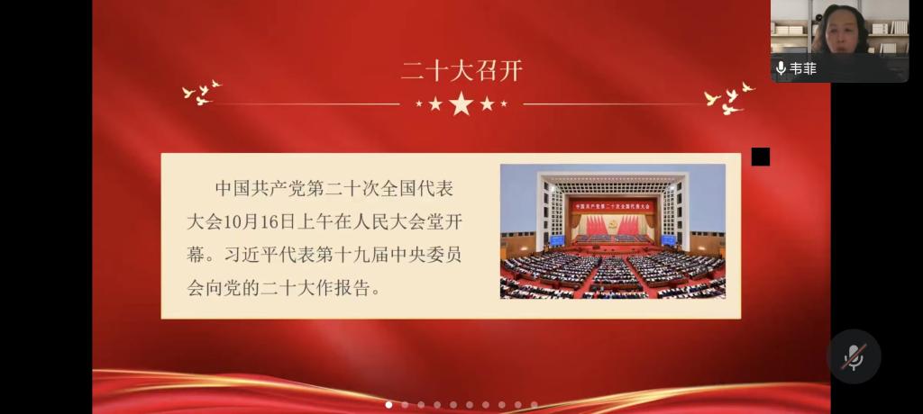 党课伊始,韦菲书记从大会主题、召开进程等多方面为同学们细致地讲解了什么是党的二十大,使同学们对党的二十大的内容有了进一步的深刻认识。接着,韦菲书记为大家讲述了党的二十大取得的重大成果以及党的二十大报告的定位和意义,勉励同学们要不断增强“四个意识”、坚定“四个自信”,做到“两个维护”。