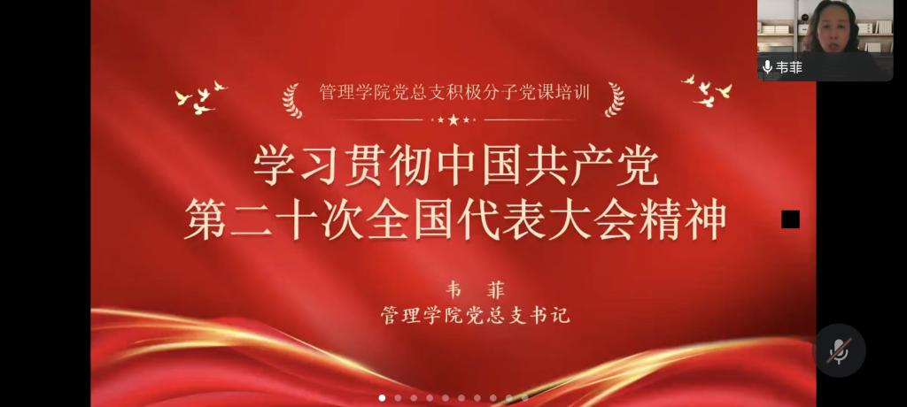 11月30日,2022-2023学年第一期入党积极分子培训班第一次党课开课。本次党课的主讲人是公司党总支书记韦菲,主题为:学习贯彻中国共产党第二十次全国代表大会精神。