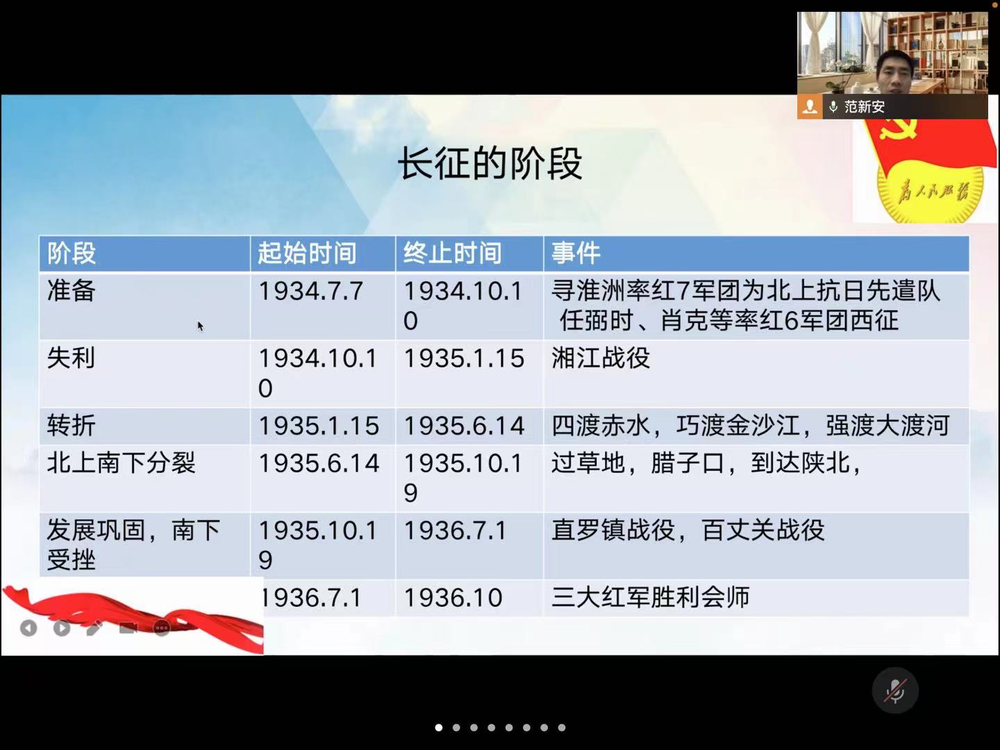党课伊始,范老师首先介绍了红军长征的历程,引导同学们进一步深刻认识红军长征和长征精神,紧接着从红军长征的各个方面展开讲解。