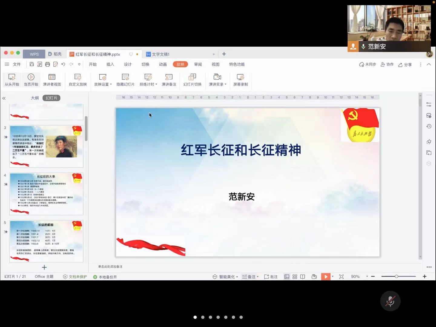 1月13日晚,2022-2023学年第一学期入党积极分子党课培训第四讲正式开始。本次党课的主讲人是球王会会计系党支部书记范新安老师,主题是《红军长征和长征精神》。