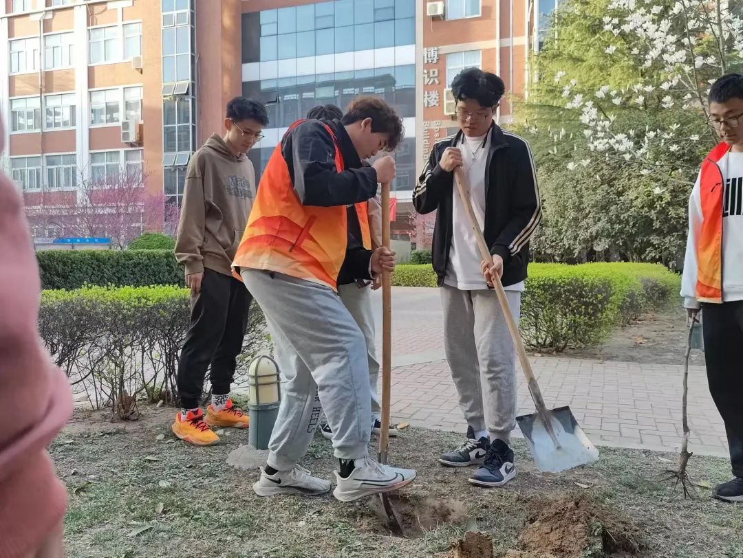 爱护自然,保护绿色;播种绿色,种下希望。球王会志愿者们分工明确:挥锹挖土、压平踏实、提水浇灌,在阳光里种下树木,树木也将在希望中茁壮成长。每种下一棵树,校园风景也将多一抹生机勃勃绿意盎然的春色。植树活动增强了大家对全民义务植树意义的学习,培养了绿色发展的人文精神。