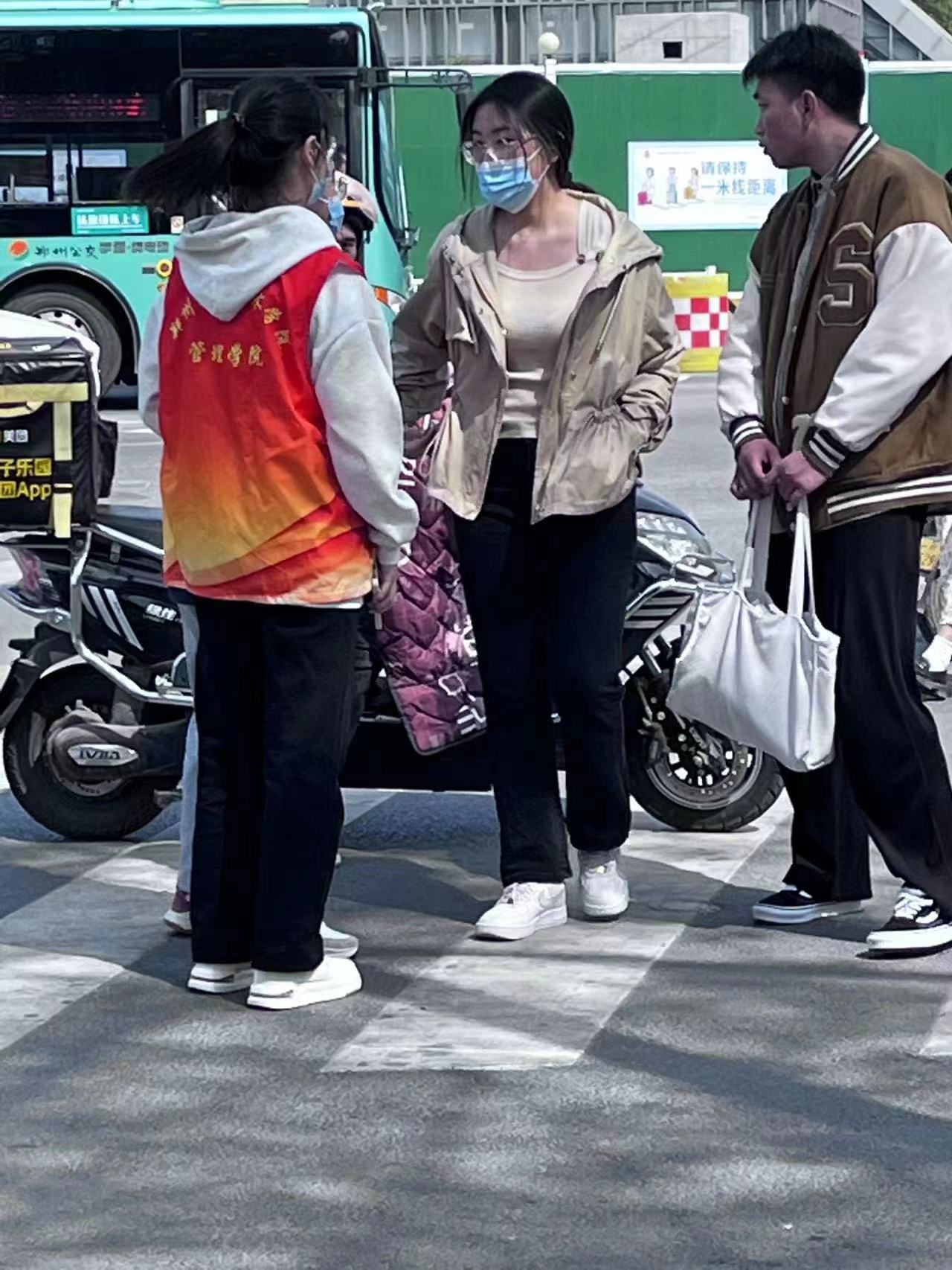 志愿者们统一志愿者服装,经过讲解此次活动意义及具体任务后,便开始此次志愿者服务活动。志愿者们分组值守各路口,指导行人、车辆规范通行。志愿者们仔细询问路边商贩这一路段近期的交通情况,热情耐心解答过往行人询问,将共享单车摆放整齐。当车辆较多时,志愿者们认真执勤,利用红灯禁行时间,为往来通行的车辆、行人普及文明出行注意事项、安全常识,进一步增强市民“遵守交规、文明出行、安全回家”的文明交通意识。