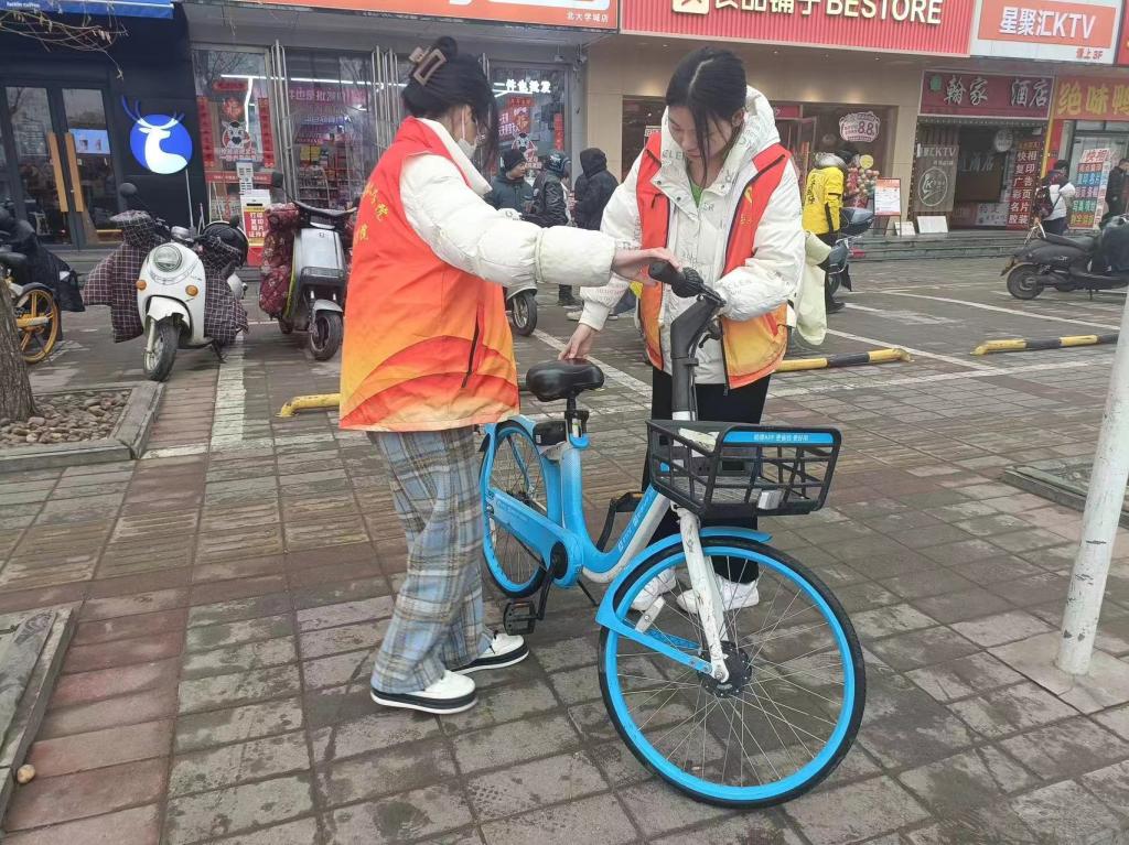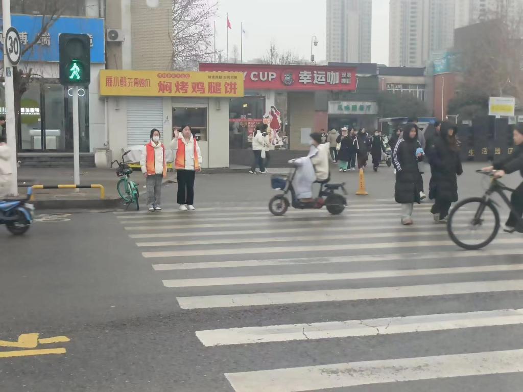 在公司路口处,志愿者们针对路口的行人进行引导,对行人等待红绿灯的有序性等进行了志愿服务。一些同学随意停放电车,阻塞正常通行,影响交通安全,志愿者在门口将乱停乱放的车辆移动到了规定位置,并且摆齐摆正。有些同学们因为着急去公司学习,可能不会等红绿灯,但是生命无小事,我们的志愿者还是上前帮助门口的保安制止了他,维护入校安全秩序。