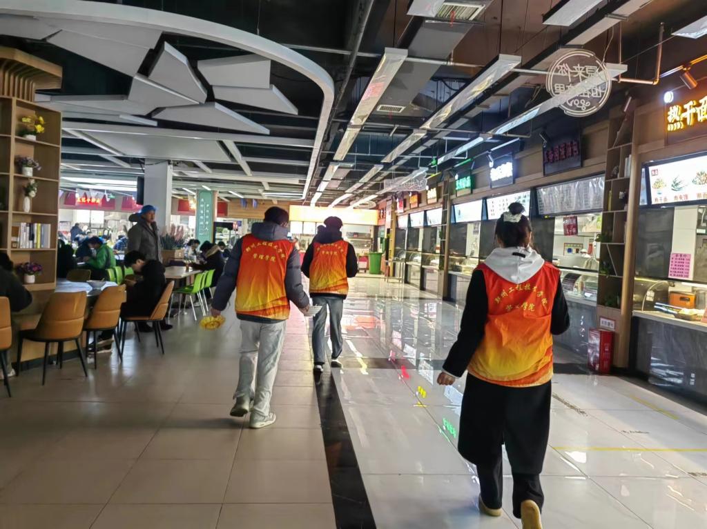 在国基生活区餐厅,志愿者们对餐厅的地面卫生、外面车辆乱停乱放、餐桌餐具的收拾整理等进行了帮助。餐厅卫生对于老员工是十分重要并且应该注重的,卫生安全不容忽视。志愿者们帮助餐厅阿姨收拾未能归放回指定位置的餐具,帮忙擦拭桌子,收拾剩菜剩饭,打扫地面卫生,摆放好桌子椅子。