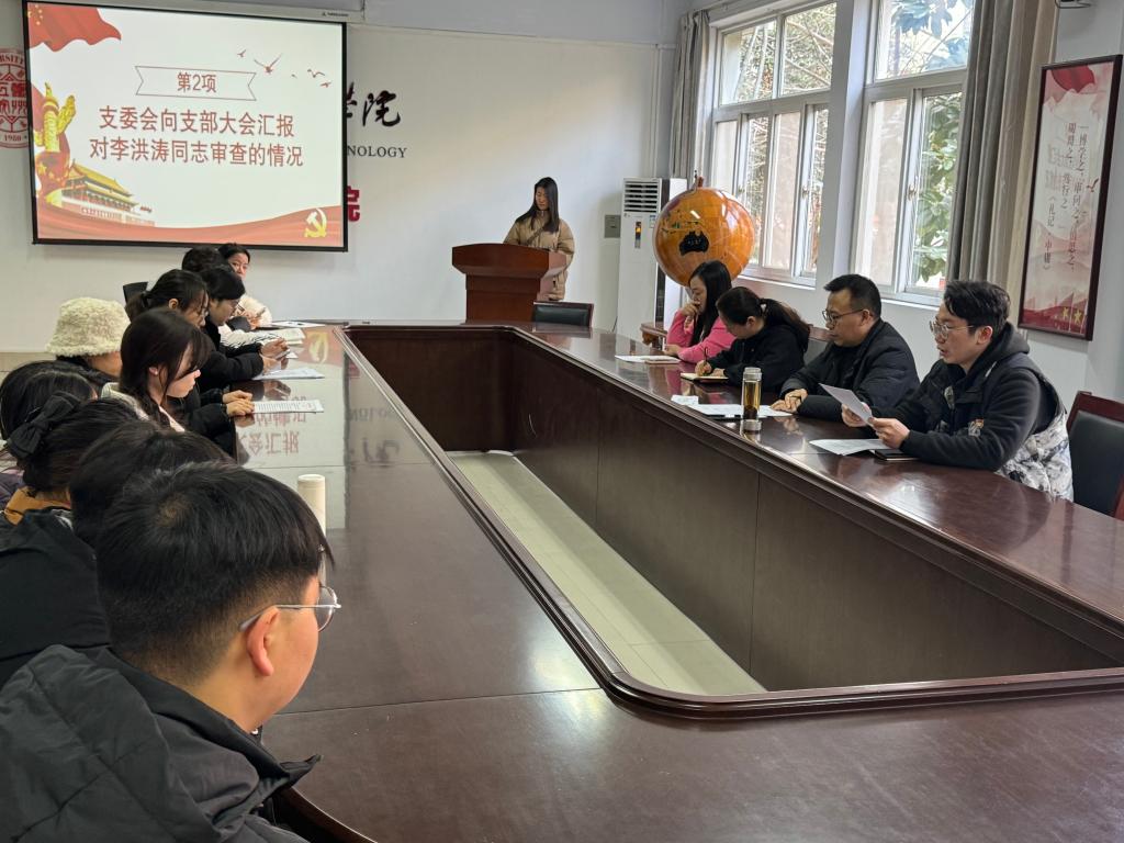 会议第二项,由组织委员吴楠代表支委会向支部大会汇报了对李洪涛同志的审查情况。接着,与会党员关于李洪涛同志转正事宜进行讨论和表决。与会党员一致同意其转为中共正式党员。经过表决,支部大会正式通过了李洪涛同志的转正申请。