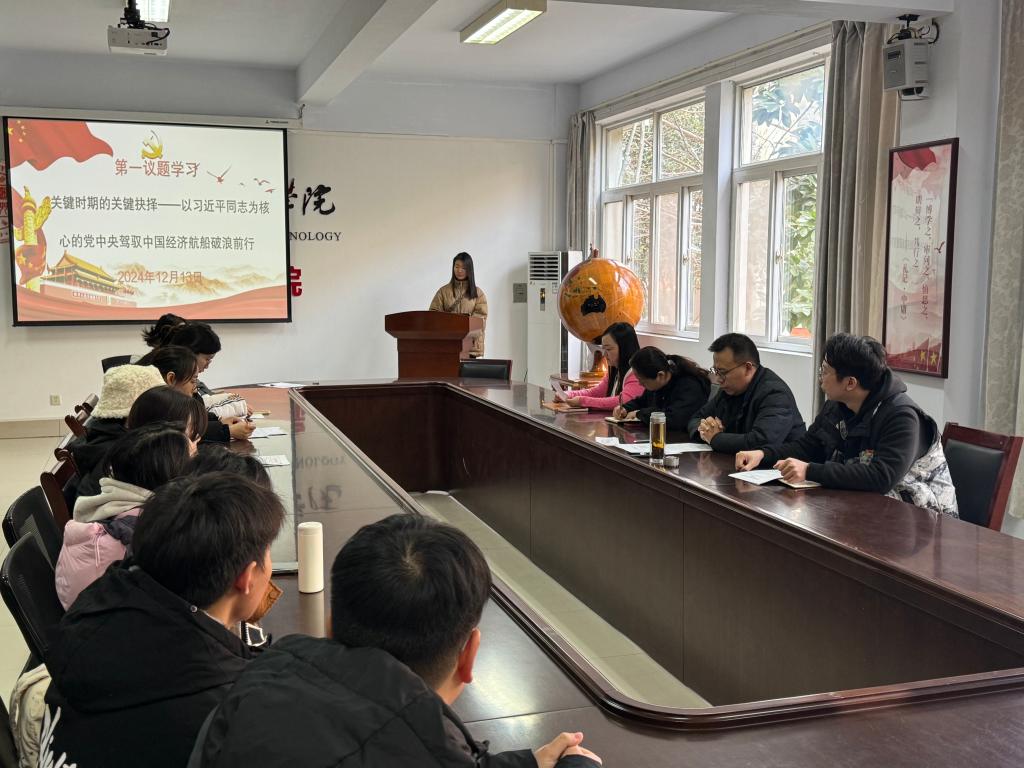 会议伊始,宣传委员丁明华老师带领支部全体党员学习第一议题:关键时期的关键抉择——以习近平同志为核心的党中央驾驭中国经济航船破浪前行。通过学习,党员们深刻理解了当前中国经济面临的复杂形势和党中央的决策部署,进一步坚定了共产主义信仰和为人民服务的决心。