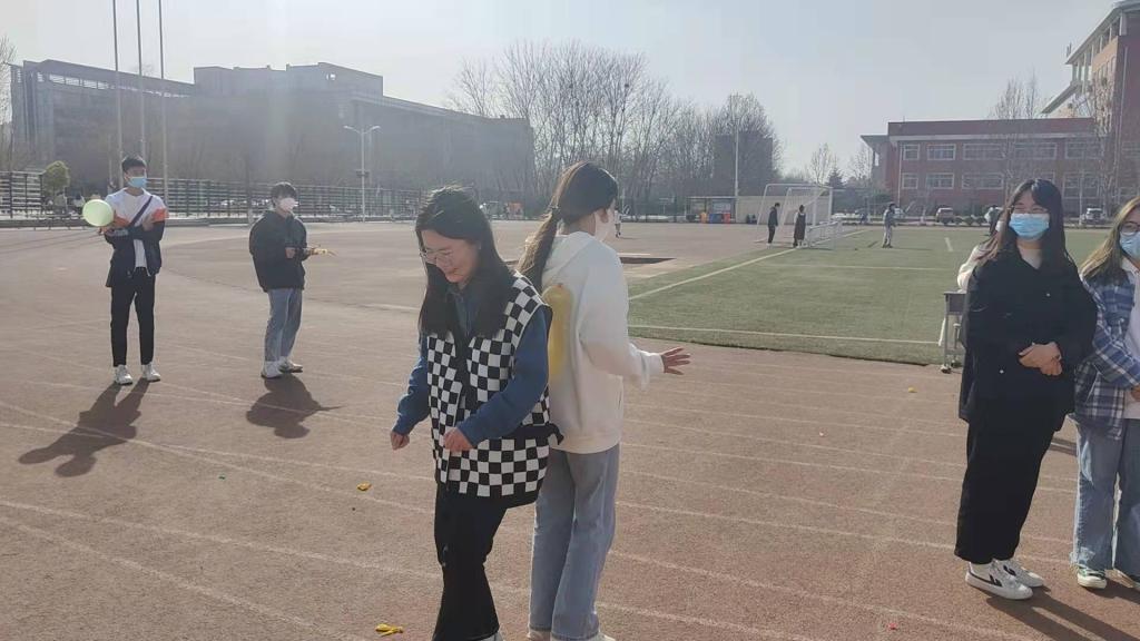 此次趣味体育活动分为接力营救、集体跳长绳、胡萝卜蹲、快乐气球四项比赛,本院女生踊跃报名。