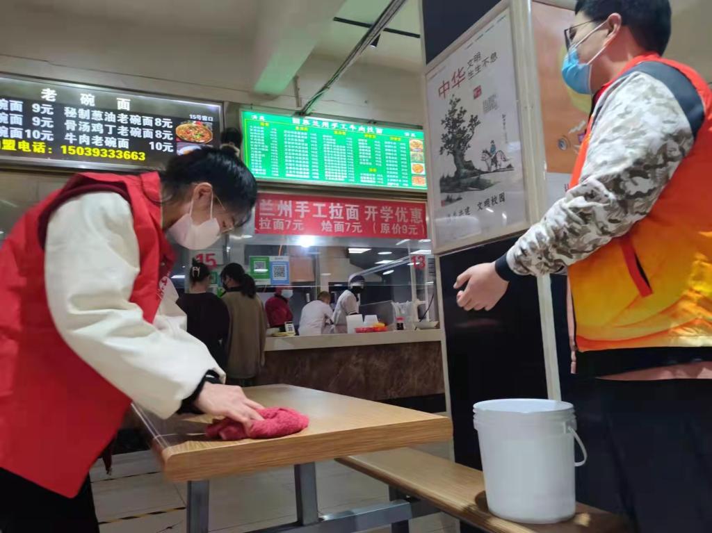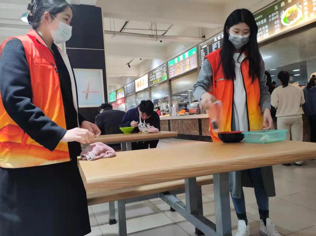 此活动围绕文明餐厅开展志愿服务行动。以“文明就餐”为要求,组织球王会员工第一、第二党支部全体成员集中治理餐厅环境,即排队有纪律,就餐有秩序,环境有品位,言行有礼貌,心中有他人,地面无污物纸屑,桌面清洁等,形成文明的就餐环境。负责人将志愿者队伍分成两个小组,活动一开始,志愿者们穿着小马甲,手拿打扫工具,准备就绪。在本次活动过程中,员工志愿者们不怕脏、不怕累,一丝不苟地整摞桌椅、清扫地面,认真地打扫每一处角落,为同学们提供了良好的就餐环境。经过近三个小时的清洁工作,餐厅环境焕然一新。