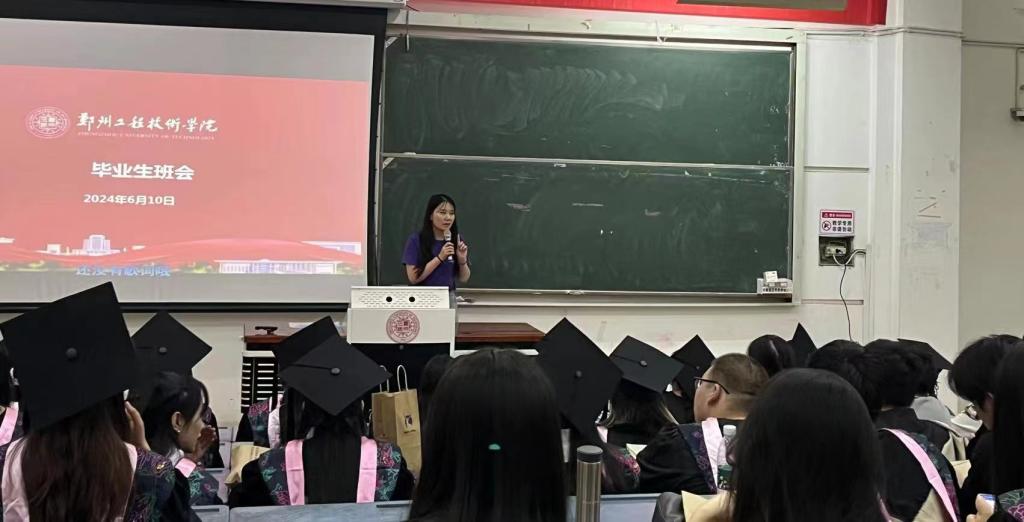 毕业班辅导员老师主持各班会议,他们带领同学们回顾了大家在郑工度过的美好时光,对大家在学业上的辛勤付出和取得的优异成绩表示了高度赞扬。同时,也代表公司的领导和老师们表达了对毕业生们未来前程的无限期待,希望他们能够不负韶华,勇敢追逐自己的梦想,为社会做出更大的贡献。