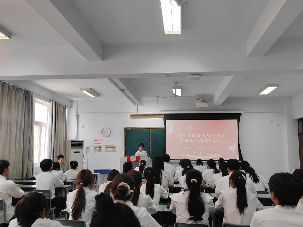 会上,分团委吴楠老师回顾了过去一年的工作并对上届员工干部的辛勤付出给予高度肯定,同时表示了对新一届干部的期许。第七届分团委总负责人李紫萌首先作述职报告,而后,各部门负责人进行学年工作汇报,阐述这学年的工作收获并总结反思。随后由社会实践部、组织部及宣传部依次进行竞选演讲,竞选环节精彩纷呈,各个候选人斗志昂扬,向在场的老师同学展示了竞选意愿。大会最后以现场线上民主投票的方式决出新一届各部门负责人,李紫萌同学向新当选成员表示祝贺作总结讲话。