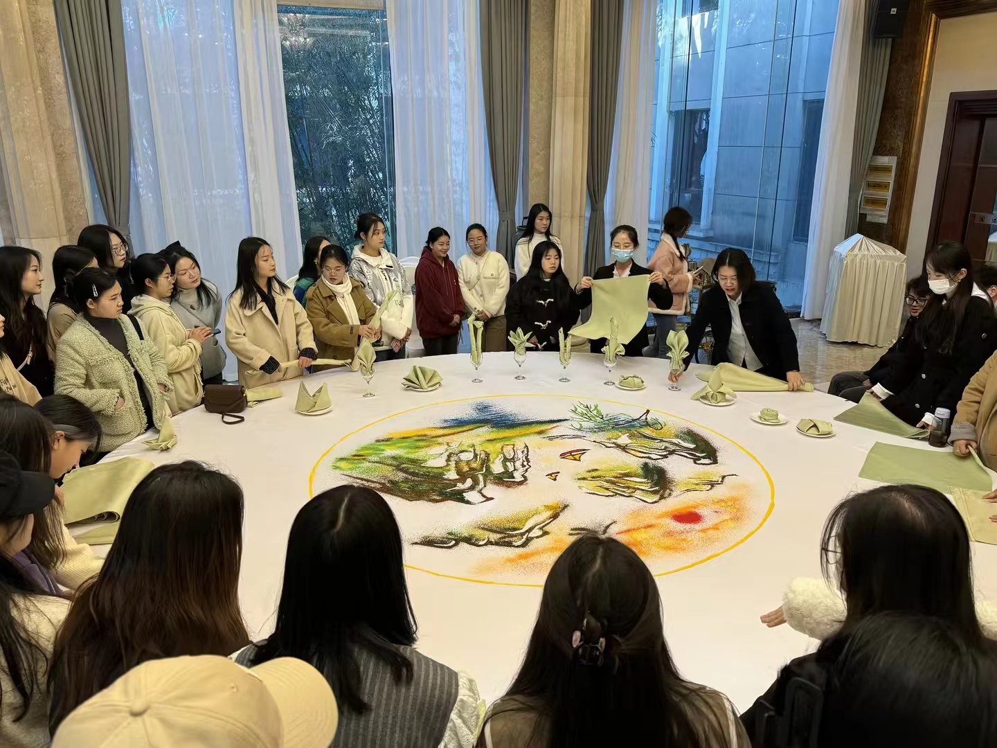 整个认识实习的过程中,黄河迎宾馆人事部门万红丽主管引领师生参观了黄河迎宾馆全貌及各部门,并进行了专业且生动的讲解。同学们首先参观了由会议中心和礼堂组成的多功能厅中华厅,在政府接待常用的会议室---牡丹厅进行了合影留念。接下来,万主管带领大家参观了六号楼别墅区客房及毛泽东主席办公、家具陈列馆。最后,同学们来到九号楼体验了黄河迎宾馆的独创技艺---粮食摆台。酒店的专业人士为同学们展现了粮食摆台的整个创作过程,介绍了粮食摆台的产生发展历程、各类主题的创意台面、以及在业内的独特地位。同学们观看过程中异常兴奋,纷纷亲手体验和创作,表现出了浓厚的兴趣。